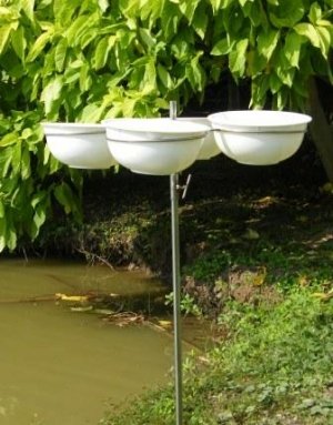 Metal frame for holding egg collection bowls. Supplied with four bowls for the four stages of tilapia egg collected.