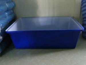 This tank can be used with the 10 tray tilapia fry holding system. Food grade polyethylene with a 6 mm thick wall and UV resistance built in. Overlayable. Can be provided with or without a drain or hole.